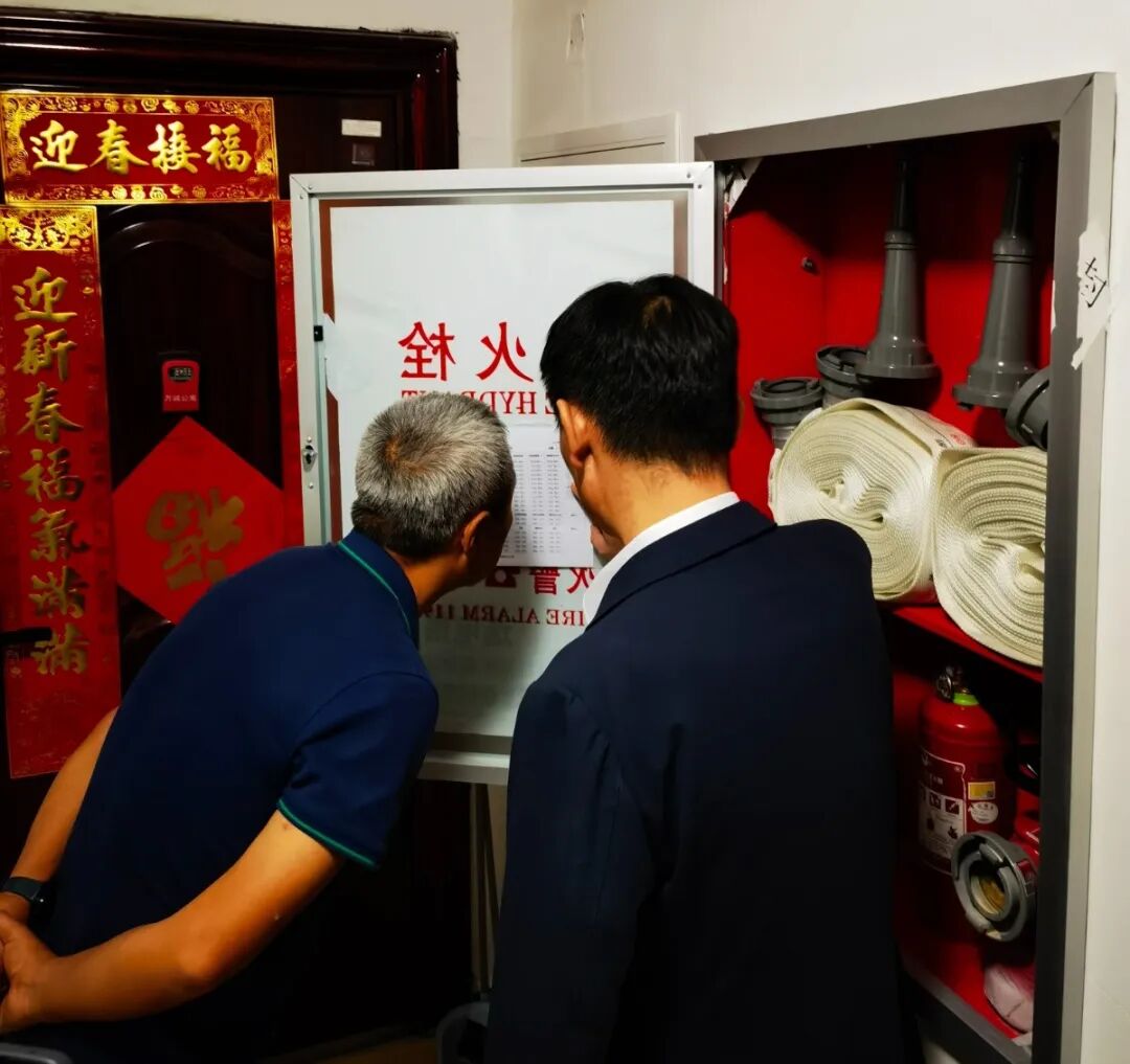 消防是节日安全的重中之重。我们逐一排查项目库房内酒精、汽油等易燃易爆物品是否单独存放、有无警示标志;检查每一处消火栓、灭火器、防火门、疏散指示灯是否完好可用,确保 “拿得出、用得上”;重点清理室内公共区域的易燃堆放物,保证消防通道时刻畅通 —— 哪怕是低层、无消防供水系统的楼栋,也已配齐功能有效的灭火器材,让安全 “不缺位”。