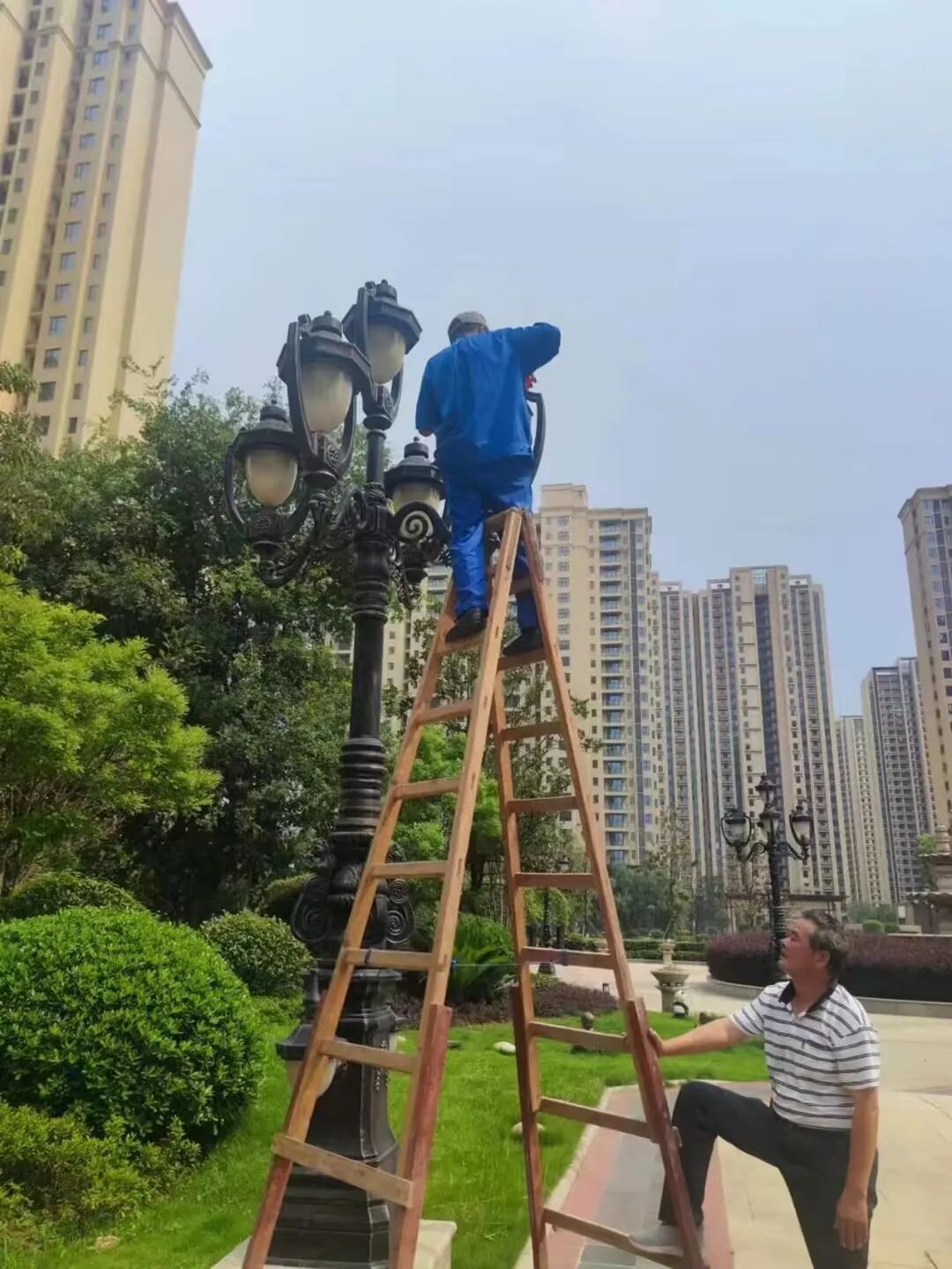 经常看到,绿化员工操作着专业工具修剪、浇灌。渴了喝一口自带的白开水,累了就坐在道路边歇歇脚。他们那如桥的脊背,晶莹的汗珠,连同那一抹被夕阳涂满釉彩的背影,构成了一道最平凡而又美丽的风景。