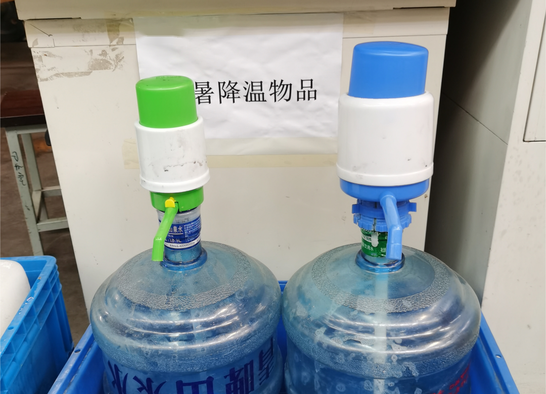 为缓解炎热高温对一线员工的影响,降低暑期事故的发生率,兴业源服务的各个项目上,已为我们的“炎”值担当提供大桶水、冰镇饮料、藿香正气水等防暑降温物品,缓解高温压力,保证员工们的饮水供应。