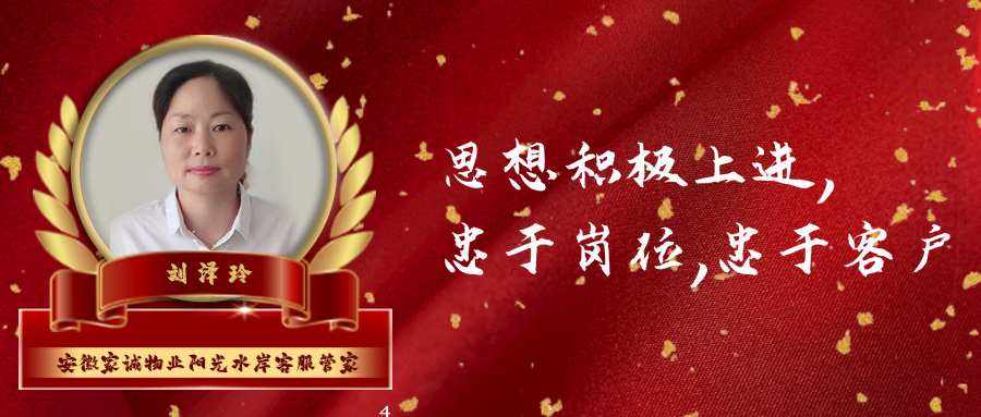 我是家诚的一名员工,名叫刘泽玲,1981年12月出生,2017年3月1日来到了家诚物业阳光水岸项目,从事的工作岗位是客服管家,在2020年9月份公司成立了党支部,承蒙公司领导、党支部书记信任,本人还担任公司党支部党建协理员一职,目前正在向党组织靠拢,是一名入党积极分子,时至今日,已在项目扎根了6年之余。