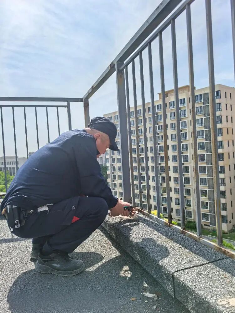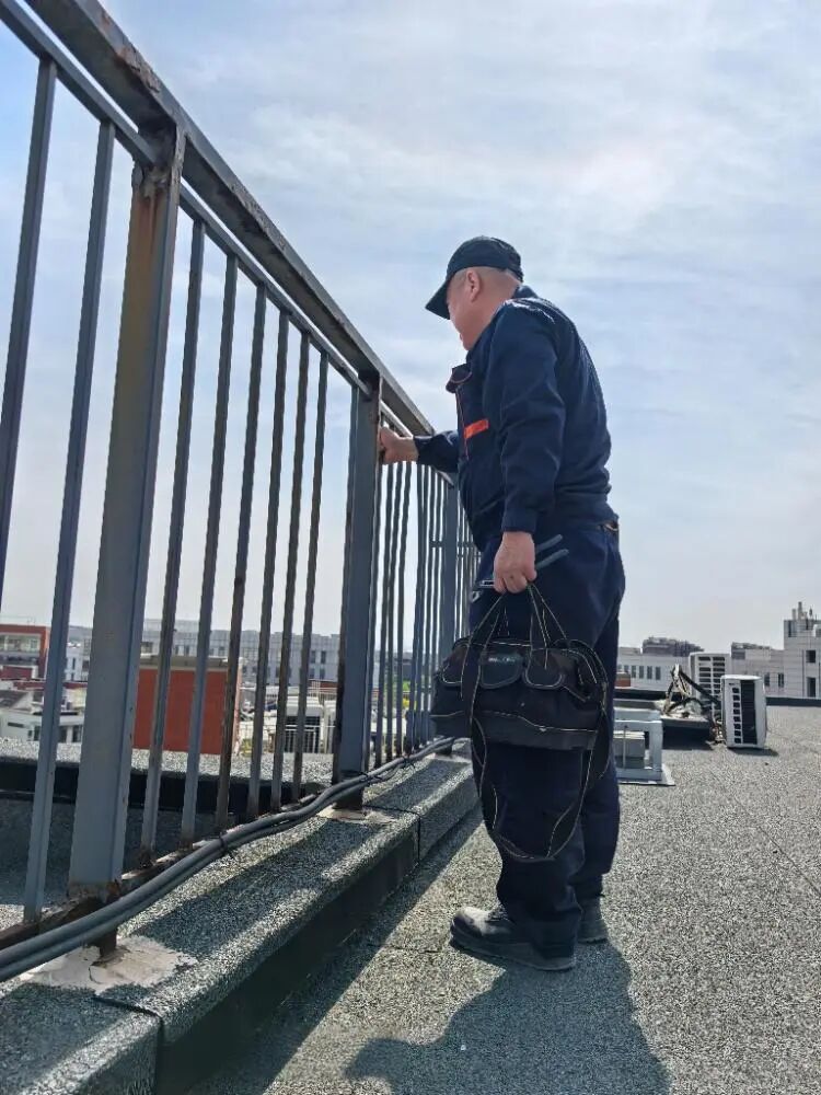 紧接着排查到楼顶时发现15-2单元楼顶上的护栏腐蚀严重,存在极大的安全隐患,陈师傅的心瞬间悬了起来,立刻打电话向部门负责人汇报:“15 - 2单元楼顶护栏严重腐蚀,有掉落的风险,请求支援,尽快安排拆除!”汇报完毕,他不敢有丝毫耽搁,在周围设置起简易的警示标识,防止不知情的居民靠近,把安全隐患消失在萌芽状态。没过多久,同事带着维修材料及时赶到15-2单元楼顶现场。陈师傅顾不上喘口气,立马投入到拆除安全隐患的护栏工作当中;他和同事们齐心协力,先拆除那些腐蚀严重的部分,再将略有松动迹象的护栏进行加固。每拧紧一颗螺丝,陈师傅都反复检查,确保安全牢固。经过一番抢险抢修工作,成功消除护栏掉落这一安全隐患 ,保障了小区的居民人身安全。