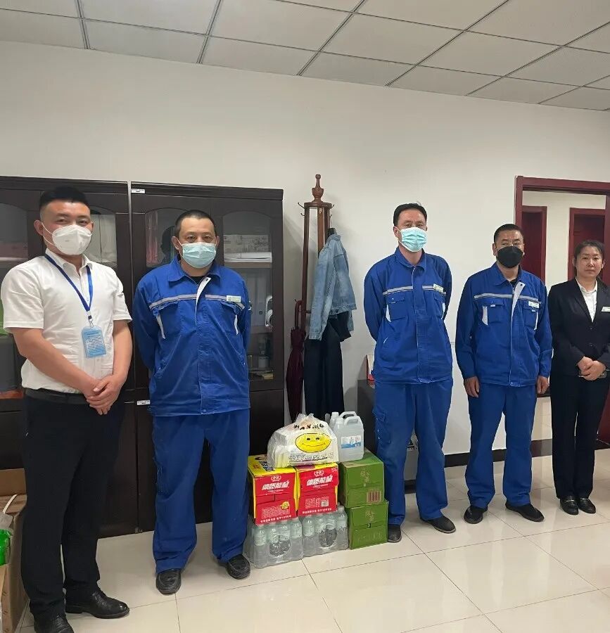 为助力各项目疫情防控工作,公司连夜购买消毒液、 PVC手套、医用防护面罩以及防暑物资,由工作人员陆续送到各项目抗疫人员手中。