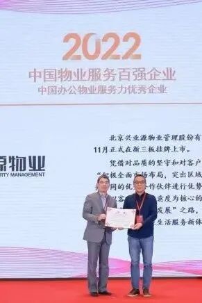 兴业源物业荣获2022中国物业服务百强企业,位列第50位;同时荣获“2022中国办公物业服务力优秀企业” 称号。