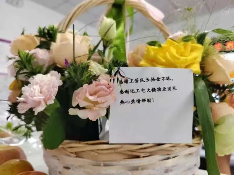 6日中午,失主张女士来院区物业处对颜师傅再次表示感谢并送来一面“拾金不昧暖人心,品德高尚扬正气”的锦旗。