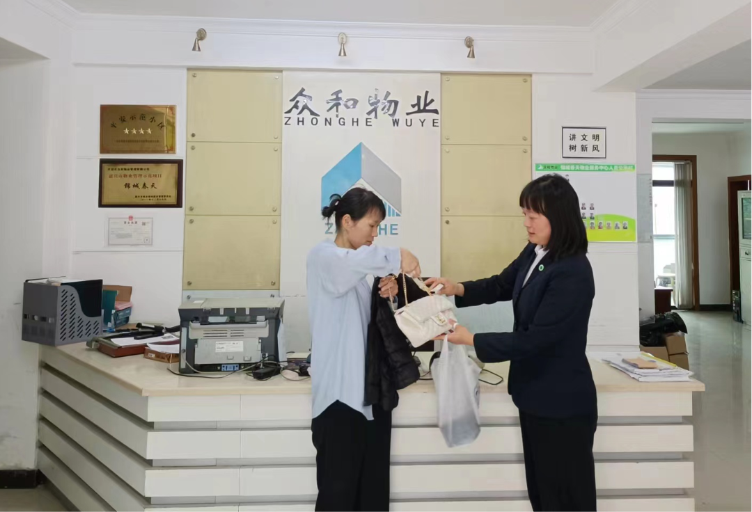 失主称赞道:“举手之劳见真情,点滴小事验人心。有众和物业在园区内为我们保驾护航,我们大家都放心。”