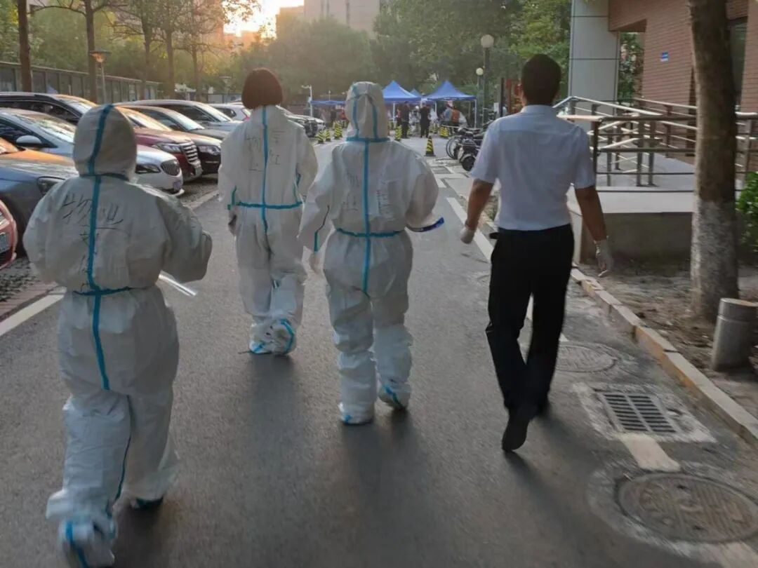 会议结束后,葛经理急忙回家拿了简单的洗漱用品和换洗衣物决定驻场值守。作为物业经理,严格按文件要求落实相应管控措施,安排部署防控工作。她亲自下设现场监督检查,舆情监测、信息报告。自封闭管控期间,防疫工作开展以来,葛经理深入“封闭管控”指导,协助安保人员开展防控工作,守好门卫第一道岗。在后勤保障工作中也是亲力亲为,在校园指挥员工全员排队进行核酸检测,不落一人。核酸检测完毕后,冲锋上阵进行全员消杀。