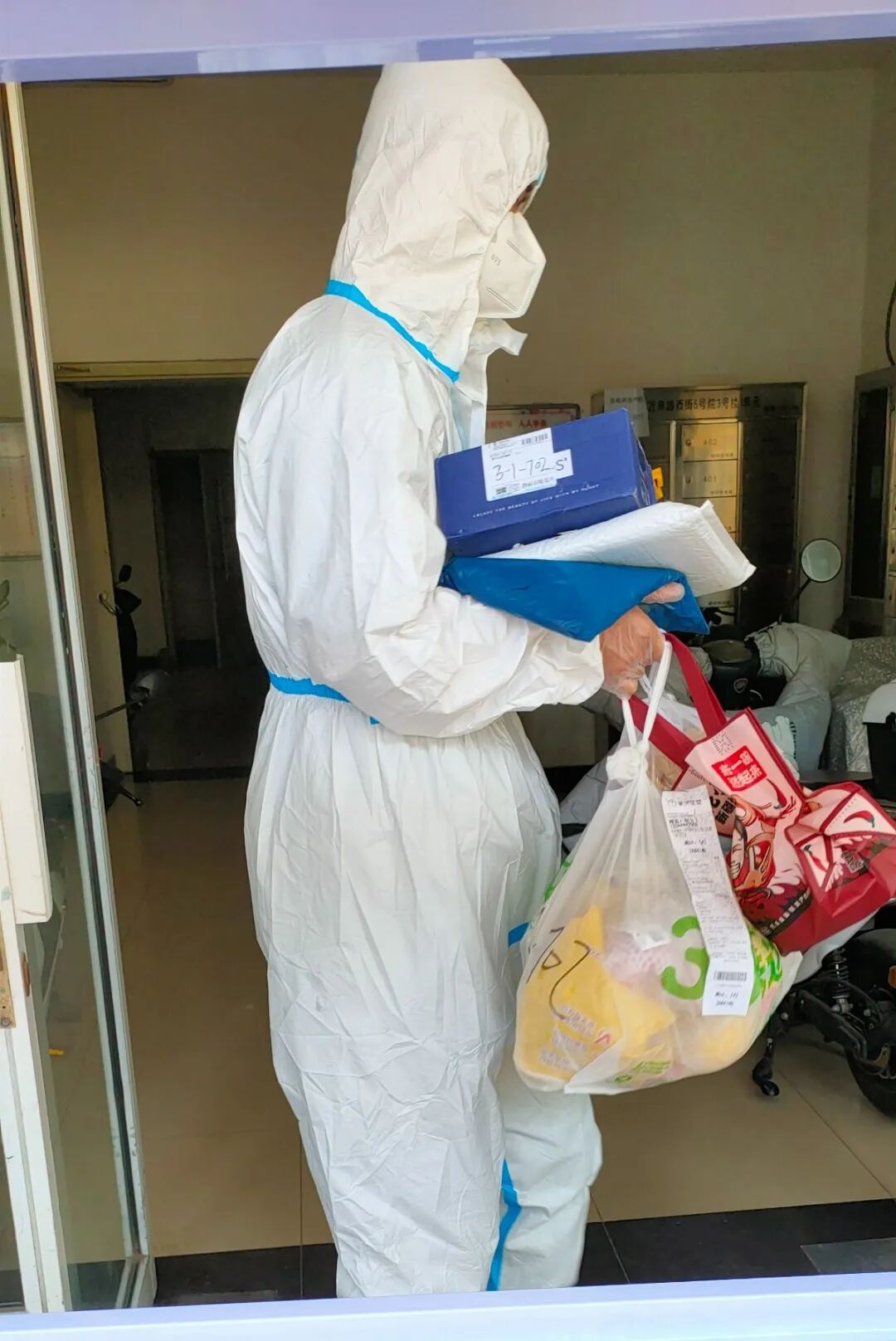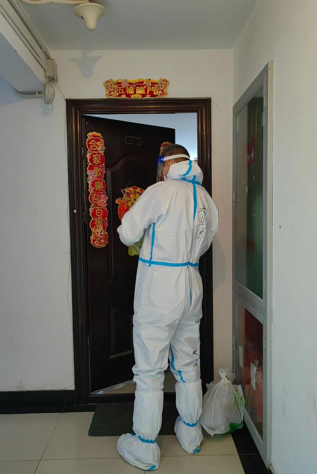 “西街5号院3-1-506帮忙收下生活垃圾,26号院西塔1404隔离人员垃圾收下,随便消毒······”