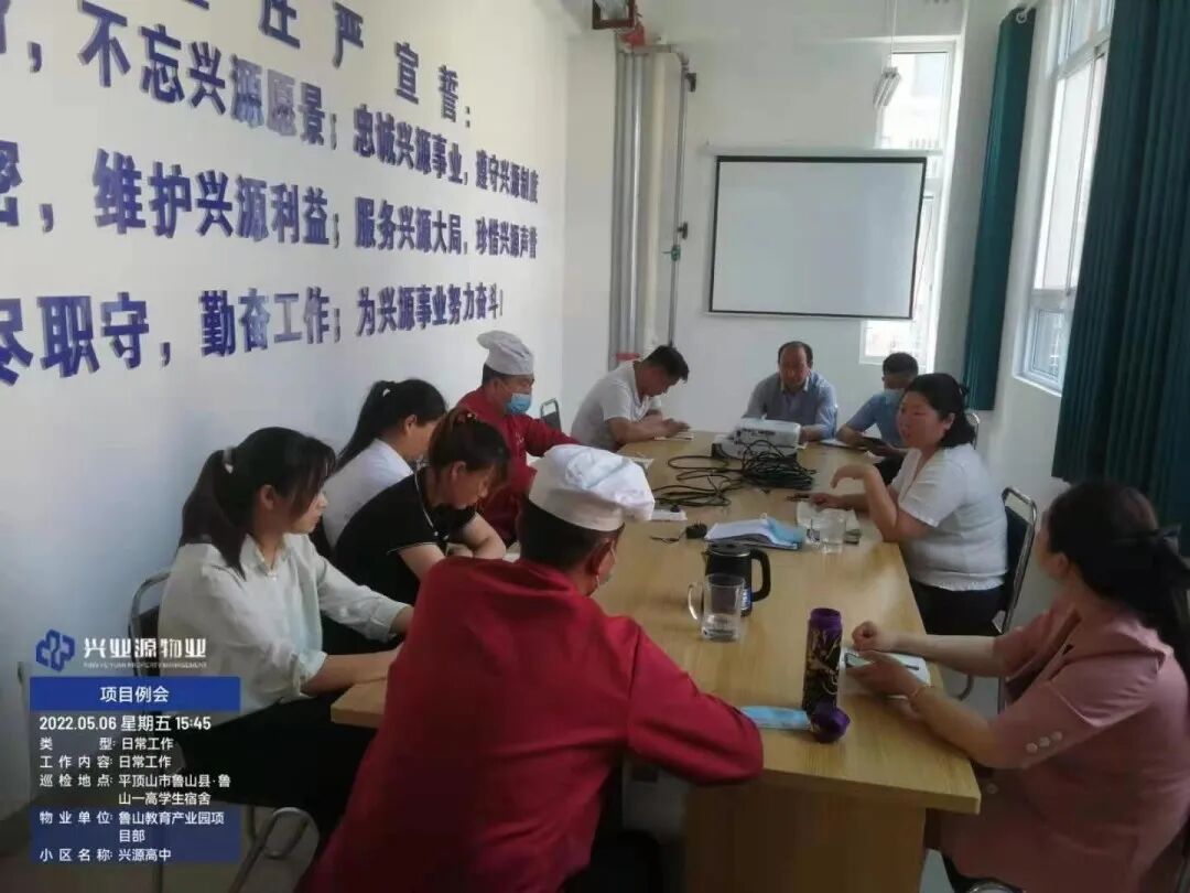 2022年5月6日,学校下发了《关于做好平顶山市区来鲁返鲁人员排查管控工作》通知,根据要求,公司立即召开会议成立疫情防控封闭管控领导小组。会议内容让大家深刻意识到此次疫情的严重程度,会议要求在校职工全员封闭管控。目前在校职工有300余人,其中餐厅员工都居住在公司在校外出租的宿舍,物业员工绝大多数都在城外居住。要想获得此次疫情阻击战的胜利,全部工作人员都需要留校住校。葛经理考虑到有部分职工需要晚上在家陪伴老人和监督孩子学网课的情况,安排他们回家做好自身防护并随全员核酸进行检测并上报工作群。其余员工全部留校住校封闭管控。