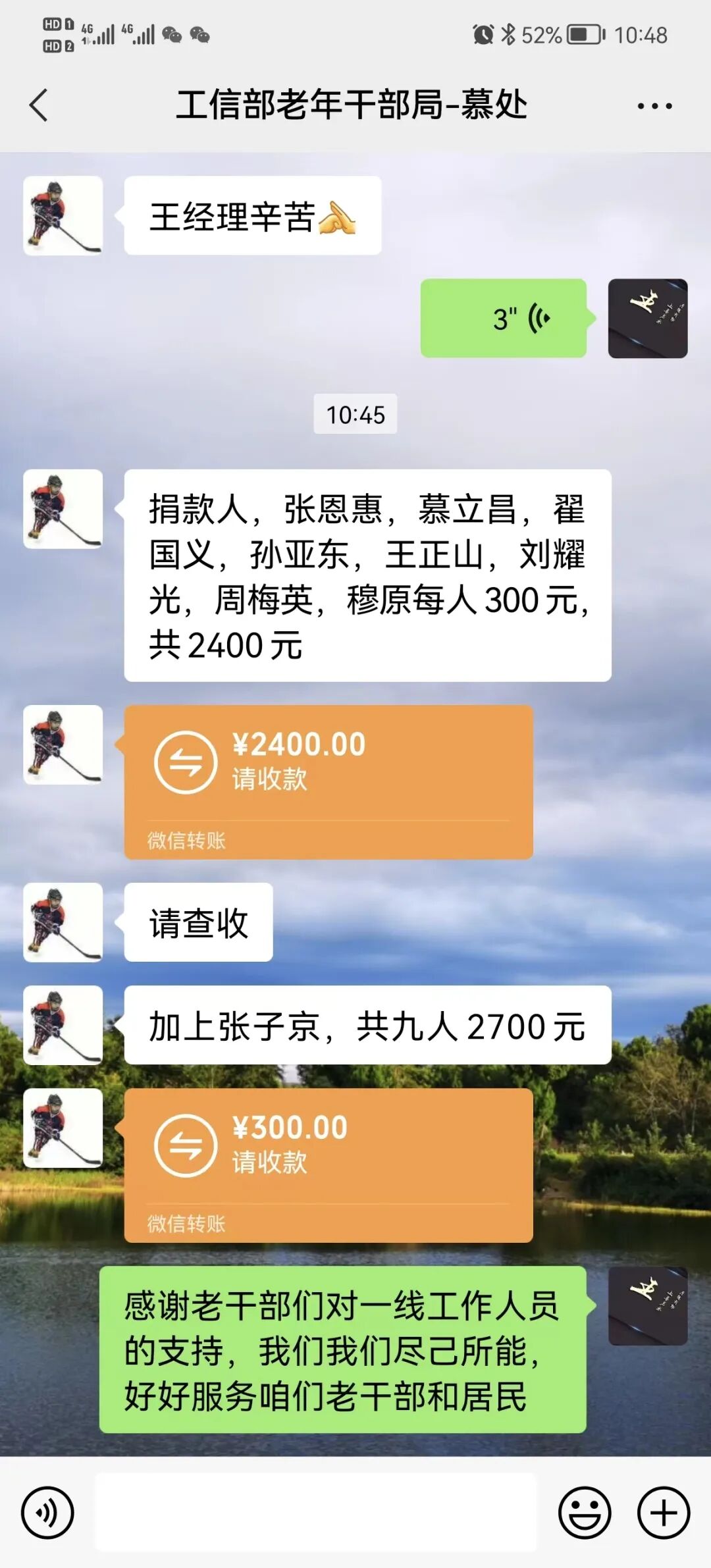 工信部收到老干部局9位业主的2700元捐款用于疫情防控