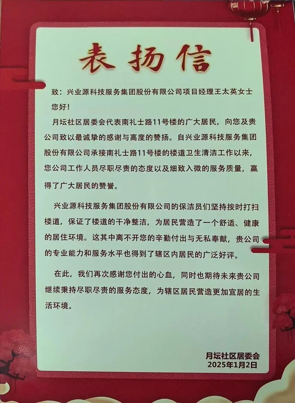 它是对兴业源服务专业团队不辞辛劳、耐心服务的诚挚谢意,字里行间饱含着感动;