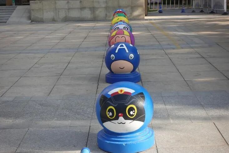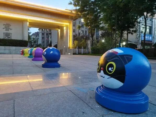 石球上的卡通形象,栩栩如生,引得不少业主频频回头。为小区增添一些新的景观,同时也让石球更加显眼,避免业主绊倒同时也阻挡了社会车辆拥挤停放在大门口。