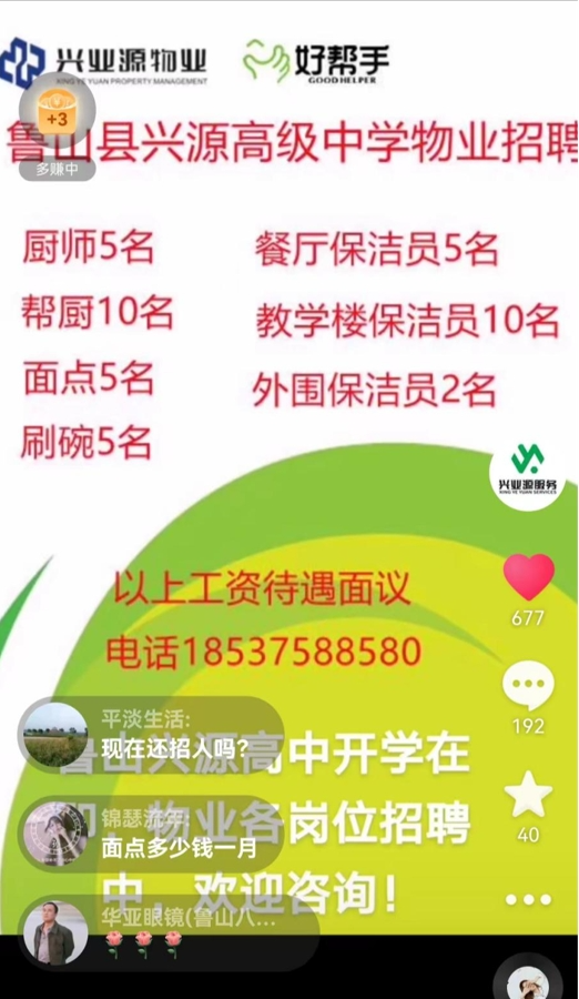2021年7月,鲁山教育产业园项目新增食堂一栋,新增高一新生2500人左右。需要餐厅员工45人,保洁员15人左右,时间紧,招聘人员众多,在经过多方研究比较后,综管部决定选择抖音平台作为主要招聘渠道,原因如下: