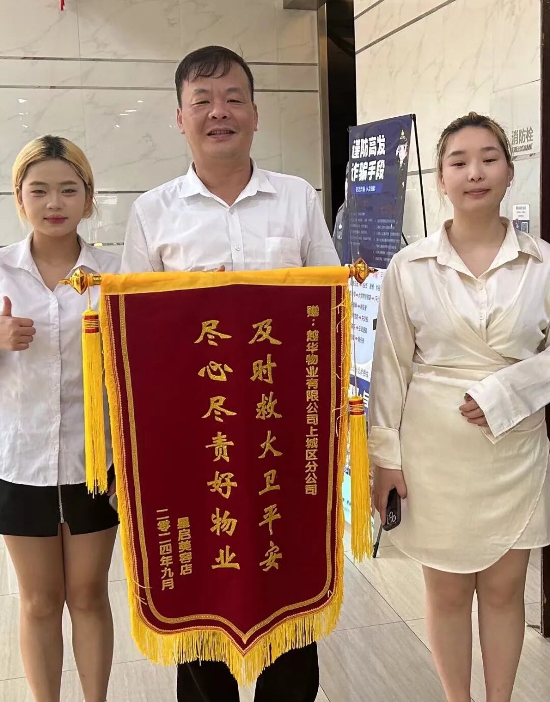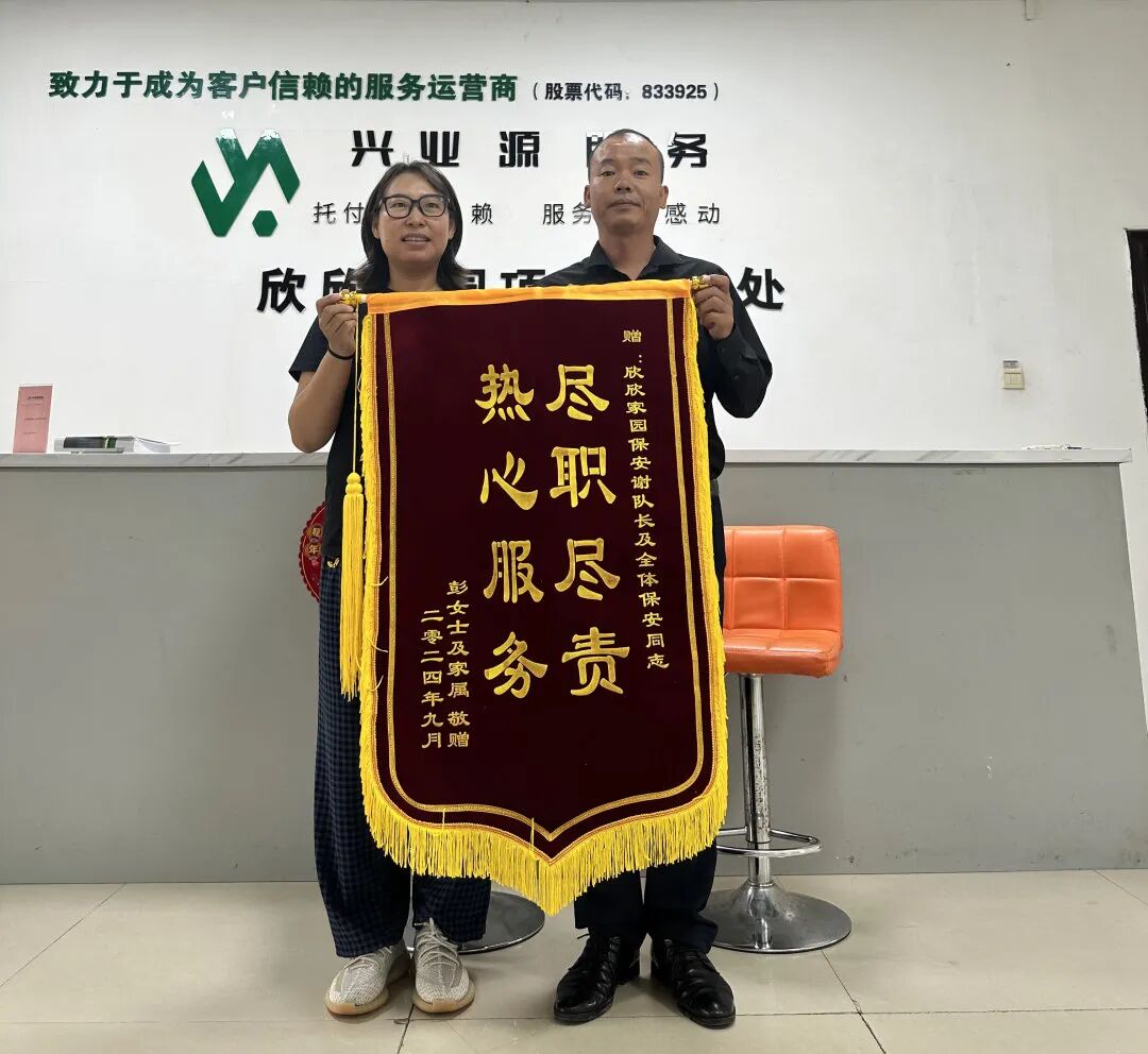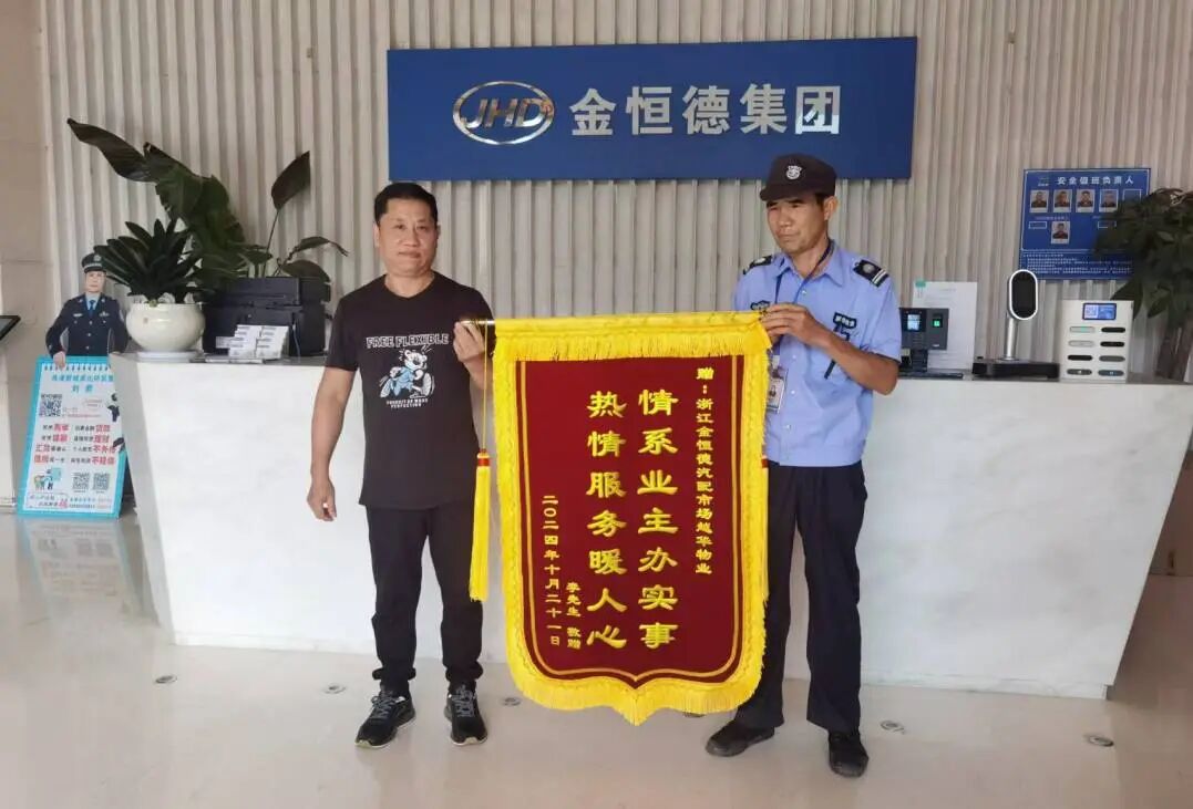为了表达由衷的感谢,业主特意送来一面锦旗。这面锦旗虽轻,词句也并不华丽,但却传递着业主深深的感激之情,更承载着业主对物业工作的高度肯定。在这面锦旗的背后,充分体现出物业工作人员面对突发事件时的卓越应急能力以及对工作的高度认真负责态度。