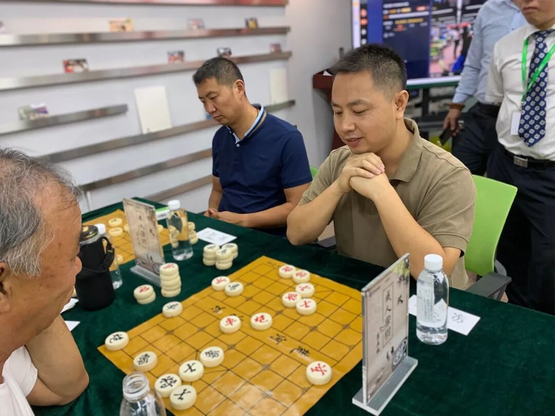 比赛中,选手们两两对弈,有的凝神静思,有的举棋微笑,有的眉头紧锁,有的摇头晃脑……更胜在决赛最后一局时,选手强大的实力,能够一心二用,一手围棋一手象棋与人对弈。真是楚汉两界决雌雄,黑白一局定乾坤。