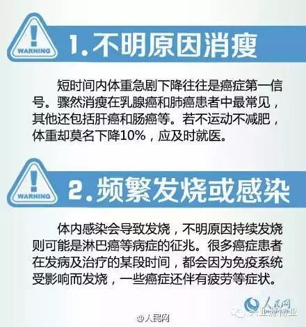 癌症早期症状具有欺骗性,有些甚至会被误认为其他疾病,耽误治疗。不明原因消瘦,频繁发烧或感染,皮肤出现新斑点或黑痣变化……这些情况都可能是癌症征兆!你留意过吗?不要谈癌色变,为自己和亲友的健康,这些要知道↓↓