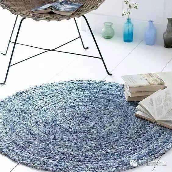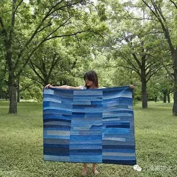 如果你的旧牛仔裤足够多,又有足够的耐心,那么你就可以用来拼接成一张毯子,做地毯、床单、帘子,深浅搭配还能编织出艺术品的效果。