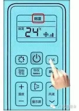 这个方法就是,将空调模式从“制冷”(雪花图形)调成“除湿”(水滴图形),就可以啦!